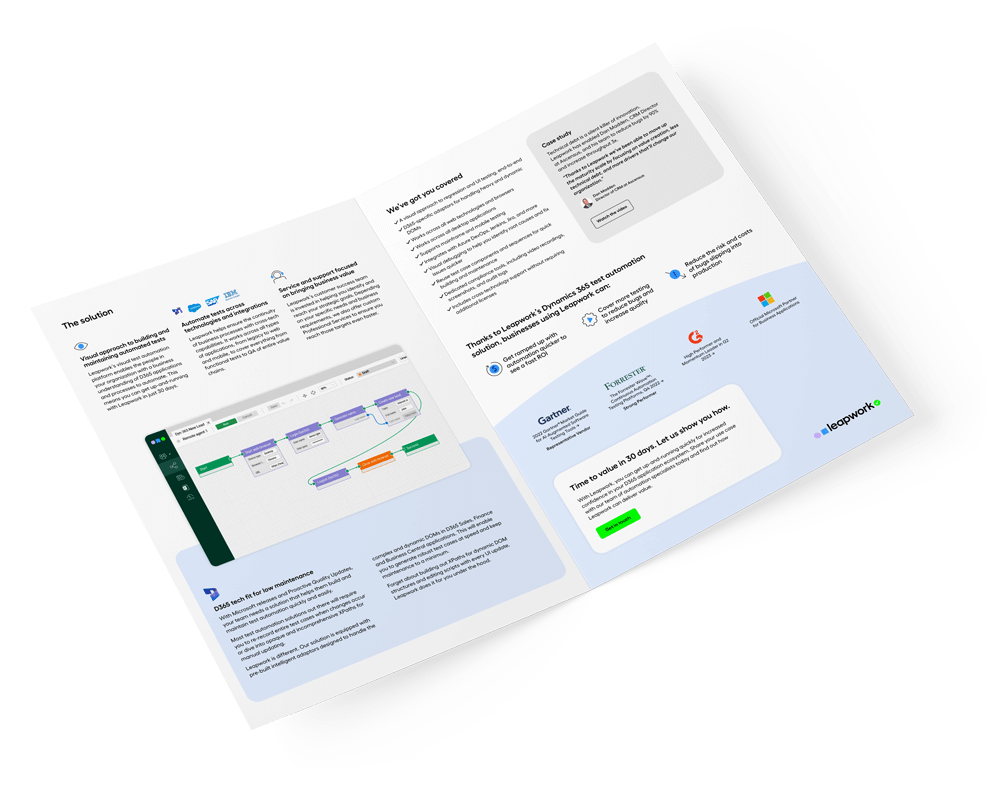 Discover how Leapwork's visual automation platform simplifies Dynamics 365 testing for all team members, regardless of technical expertise.