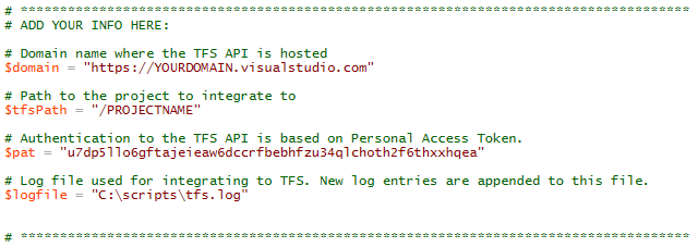 To use the PowerShell script, you need to specify a few settings about you Azure DevOps Server installation: