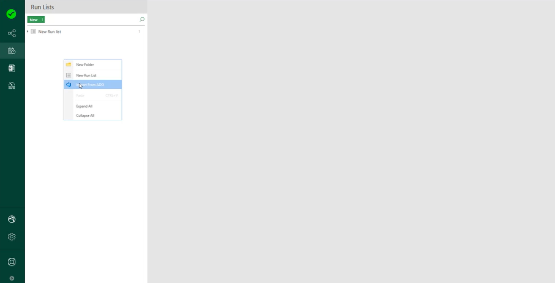 - In Run lists, right click and select Import from ADO.
